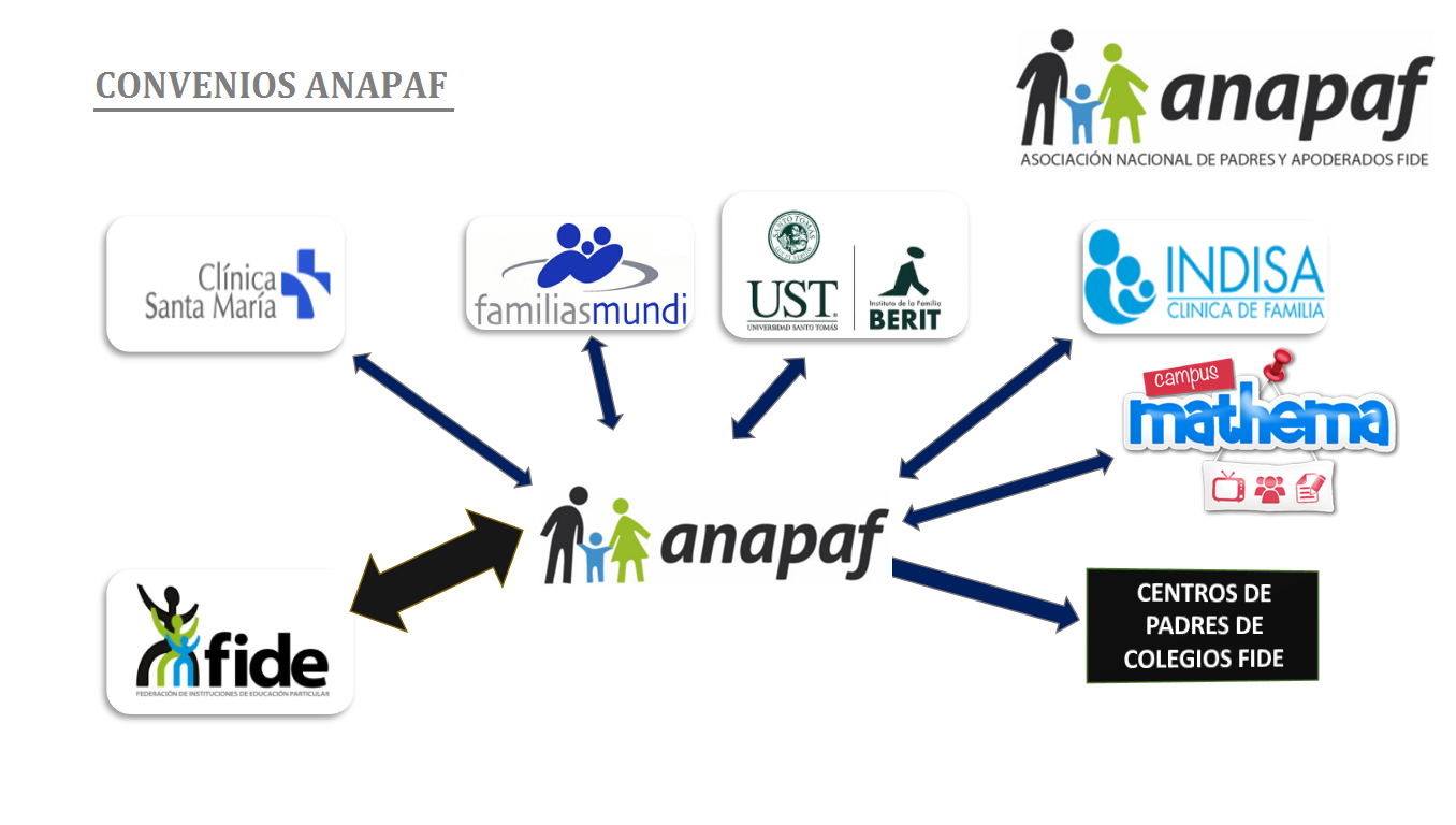 Recientemente se ha suscrito un convenio con entre ANAPAF y Mathema, portal de internet que busca ayudar al estudiante a repasar lo aprendido en clases con material audiovisual que sin duda facilita el aprendizaje de nuestros hijos. Actualmente se han entregado alrededor de 20.000 becas para alumnos de colegios FIDE. |